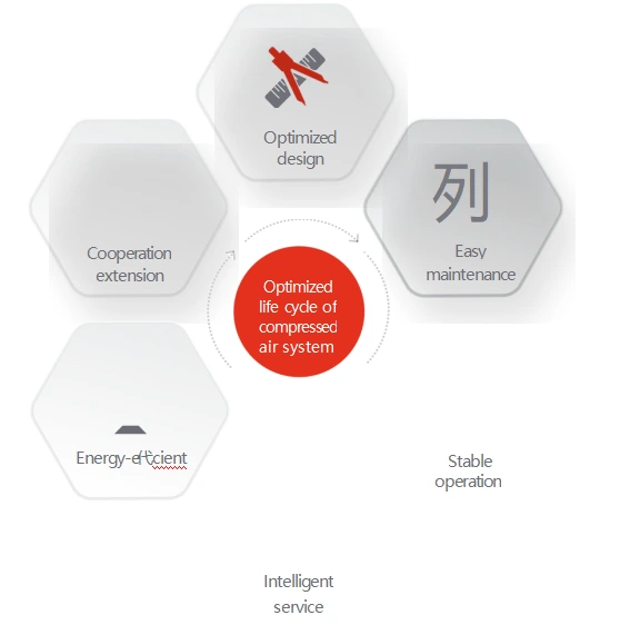 ကျွန်ုပ်တို့၏သက်သေပြထားသော airends များနှင့် ထူးခြားသော * ဒီဇိုင်း modules များသည် အပြည့်အဝအအေးခံပြီး ထိရောက်သောမော်တာများနှင့်ပေါင်းစပ်ကာ၊ ပုံသေနှင့်ပြောင်းလဲနိုင်သောအမြန်နှုန်း drive နှစ်ခုစလုံးအတွက် ပိုမိုကောင်းမွန်သောစျေးကွက်စွမ်းဆောင်ရည်ဖြင့် မြင့်မားသောလေစီးဆင်းမှုအဆင့်ကို ပံ့ပိုးပေးပါသည်။