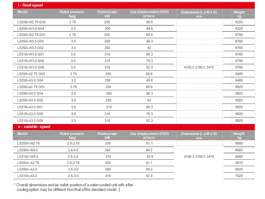 LS-series ဖိအားနည်းဆီ-အခမဲ့ဝက်အူလေကြောင်းကွန်ပရက်ဆာ 200-315kW