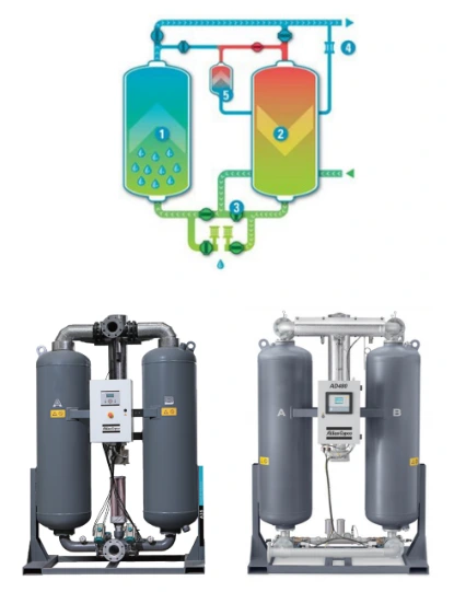 A-series micro-heat regenerative adsorption dryers များသည် compressed air မှ အစိုဓာတ်ကို စုပ်ယူရန်အတွက် desiccant ကို အသုံးပြုပါသည်။ စက်တစ်ခုစီတွင် တူညီသော တာဝါတိုင်နှစ်ခု ပါဝင်သည်။ ၎င်းတို့သည် လည်ပတ်မှုတစ်ခုစီပြီးနောက် လုပ်ဆောင်ချက်များကို ပြောင်းသည်။